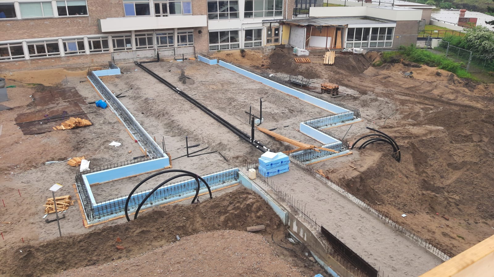 De volgende mijlpaal in het bouwtraject zal zijn als het gebouw wind- en waterdicht is, dan kan de afwerking binnen van start gaan. Dit zal iets na de bouwvak zijn.