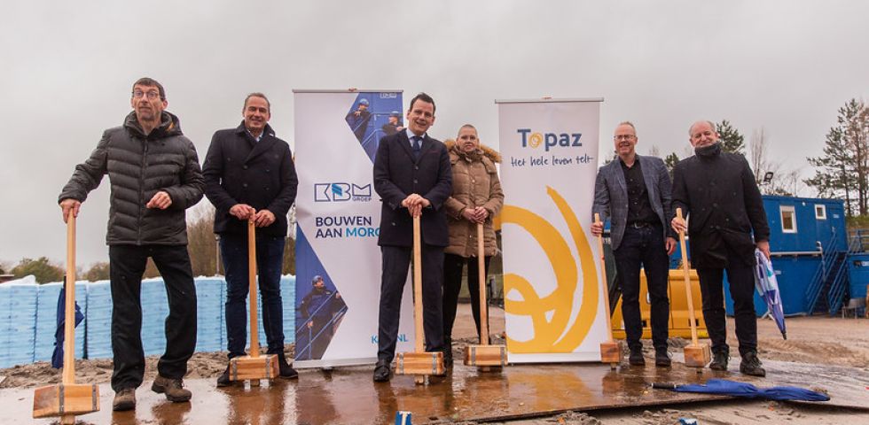 Wethouder Gerard Mostert van de gemeente Katwijk sloeg samen met twee bewoners van Topaz Overduin en de directieleden van KBM en Topaz symbolisch de eerste paal. De nieuwbouw betreft 80 appartementen voor mensen met de ziekte van Huntington en het nieuwe restaurant van Overduin. Vanaf maart 2024 zal dit nieuwe deel van Topaz Overduin in gebruik worden genomen.