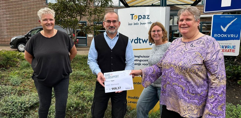 Op dinsdag 7 oktober namen Jolanda Been, Diana Barnhoorn en Marieke van Duyvenbode van Topaz Zuydtwijck een cheque in ontvangst van Durmus Dogan namens Rabobank ClubSupport.